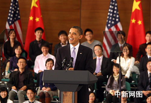 > 美國(guó)總統(tǒng)奧巴馬在上海與中國(guó)青年對(duì)話(huà)